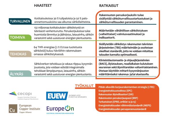 Kattojärjestömme EUEW on tiivistänyt yhteiset tavoitteet STUL ry:n kattojärjestö EuropeOnin, kaapelinvalmistajien järjestö CECAPIn ja European Copper Instituten kanssa oheiseksi kaavioksi.